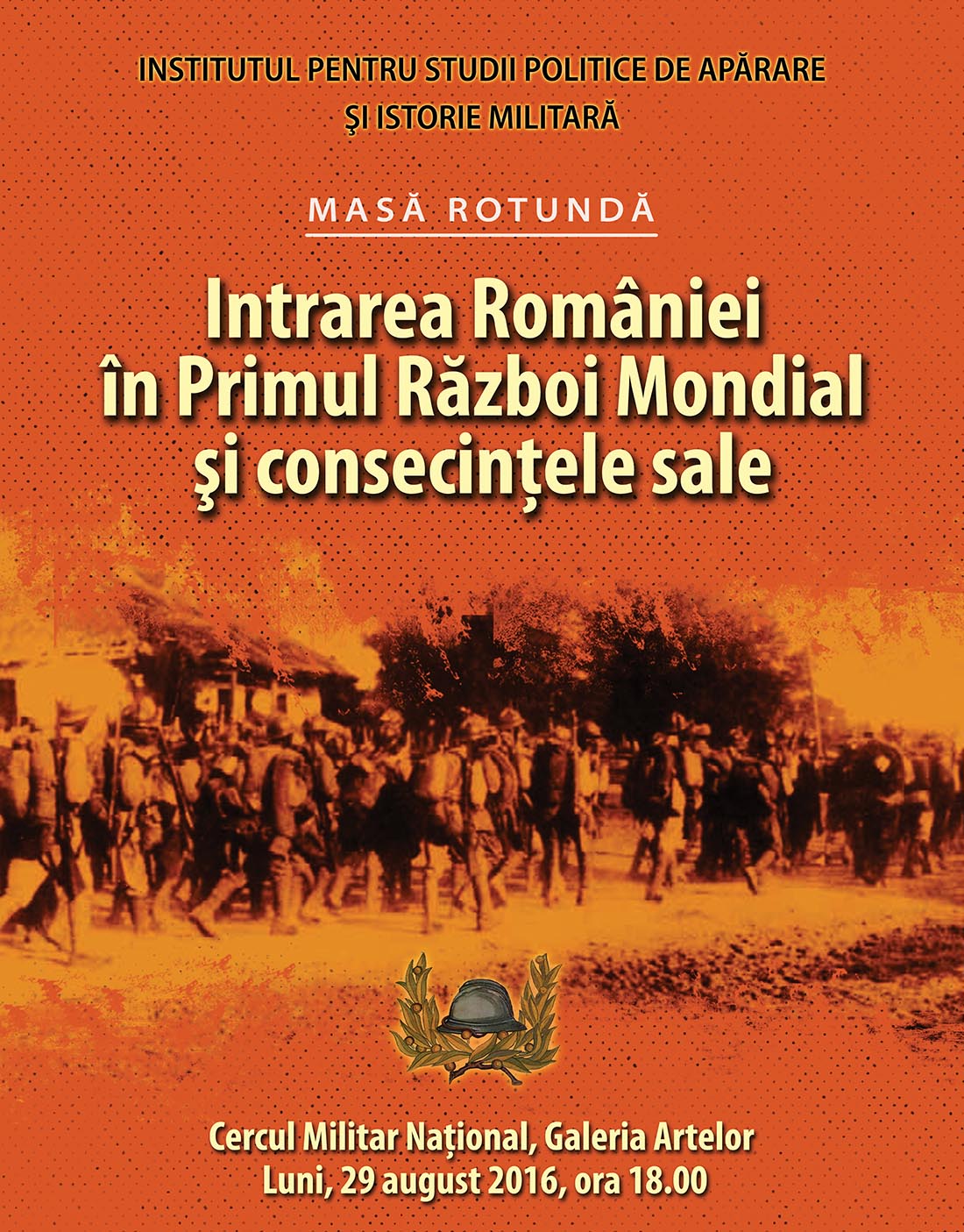 În perioada 19 – 22 octombrie 2016, la Galeria Artelor a Cercului Militar Naţional, are loc cea de-a XII-a ediţie a Salonului de carte „Polemos” Istorie, Ştiinţe Politice, Securitate şi Apărare, eveniment prin care Editura Militară marchează Ziua Armatei şi 100 de ani de la intrarea României în Primul Război Mondial. Salonul va fi deschis de miercuri până vineri, între orele 11:00 şi 19:00, iar sâmbătă între orele 11:00 şi 13:00. Deschiderea oficială are loc miercuri, 19 octombrie, la ora 13:00. Salonul de carte „Polemos” este organizat – sub patronajul Comandamentului Logistic Întrunit – de Editura Militară, în colaborare cu Societatea Scriitorilor Militari, având ca parteneri: Cercul Militar Naţional, Biblioteca Militară Naţională, Societatea Editorilor din România, Amplus International Ltd. Partener media: Trustul de Presă al Ministerului Apărării Naţionale. Participă la această ediţie: Editura Academiei Forţelor Terestre „Nicolae Bălcescu”, Editura Centrului Tehnic-Editorial al Armatei, Asociaţia „Clubul Amiralilor”, Asociaţia Naţională Cultul Eroilor „Regina Maria”, Editura Detectiv Literar, Fundaţia Culturală „Magazin Istoric”, Revista „Gândirea Militară Românească”, Editura Fundaţiei Speteanu, Grupul Editorial Corint, Editura Hasefer, Revista Historia, Institutul pentru Studii Politice de Apărare şi Istorie Militară, Academia Română – Institutul Naţional pentru Studiul Totalitarismului, Editura Marist, Editura Mica Valahie, Editura Militară, Editura Ministerului Afacerilor Interne, Institutul Revoluţiei Române din Decembrie 1989, Editurile Semne–Artemis, Tritonic, Muzeul Militar Naţional „Regele Ferdinand I”, Societatea Editorilor din România, Societatea Scriitorilor Militari, Editura RAO, Editura Top Form, Editura Universităţii Naţionale de Apărare „Carol I”, Trustul Editorial Orizonturi şi Trustul de Presă al Ministerului Apărării Naţionale. În cadrul salonului, vor fi lansate lucrări nou-apărute, pe teme de istorie, politici şi strategii de securitate, studiul conflictelor etc., prezentate de personalităţi ale vieţii culturale şi ştiinţifice româneşti. Intrarea este liberă. Înarmaţi-vă cu cărţi!