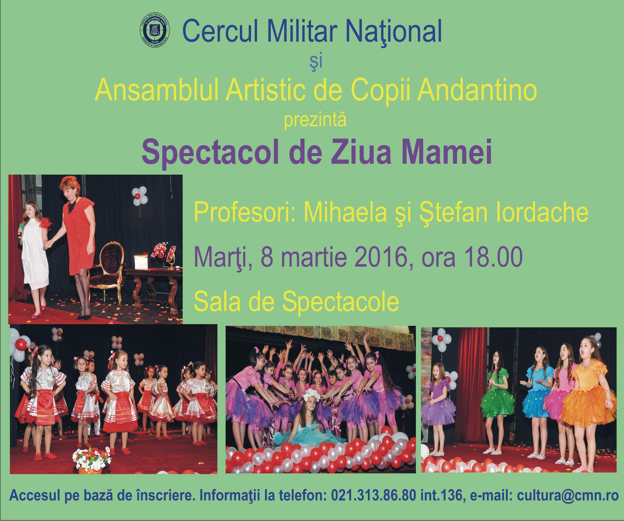 Concert Pascal Marți, 19 aprilie 2016, ora 18.00, la Sala de Marmură, are loc loc concertul „Lumina lui Hristos luminează tuturor!” susținut de Corala „Nicolae Lungu” a Patriarhiei Române. Soliști: Ingrid Boengiu, Irina Ionescu, Alexandru Onea, Ciprian Mardare, Cosmin Melinte.
