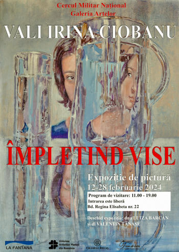 Galeria Artelor a Cercului Militar Național vă invită să vizitați până la data de 28 februarie 2024 „Împletind vise” – o expoziție de lucrări de pictură semnate de artista vizuală Vali Irina CIOBANU.