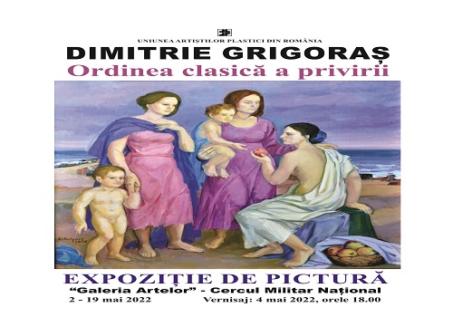 Galeria Artelor a Cercului Militar Național vă invită să vizitați până la data de 19 mai 2022 „ORDINEA CLASICĂ A PRIVIRII”, o expoziție cuprinzând peste 50 de lucrări semnate de artistul plastic Dimitrie GRIGORAȘ, lucrări ilustrând cei peste 60 de ani de activitate artistică. Cu ocazia vernisajului expoziței, la data de 4 mai 2022 a fost lansată și monografia artistului, semnată de istoricul de artă Eduard ANDREI: ,,Dimitrie GRIGORAȘ. Ordinea clasică a privirii” (Editura Paideia, București, 2021). Expoziția este deschisă zilnic, între orele 11.00-19.00. Intrarea liberă.