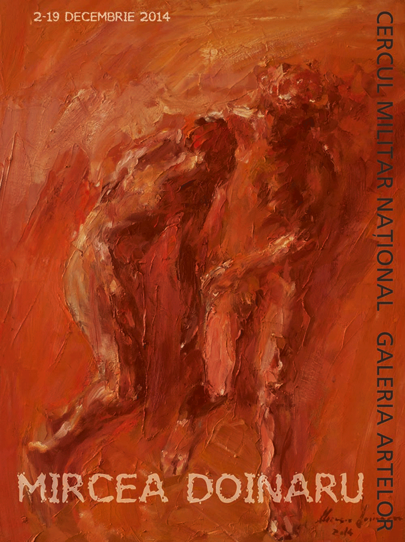 Deschisă între 2 și 19 decembrie 2014 la Galeria Artelor a Cercului Militar Național, expoziția lui Mircea DOINARU se individualizează prin atmosfera aspectărilor picturale, caracterizată de concentrarea mesajului. Pe scena estetică a lui Mircea DOINARU predomină tehnica în cuțit, împreună cu defilarea unor personaje localizate, ideatic, în atât de speciala zonă a meditației. Frământările sunt disimulate cu deosebită abilitate. Aceste pânze pot fi amplasate în siajul neoexpresionismului. Sunt transfigurări care asumă extensiuni imaginative până spre atât de complexul areal propriu mitologiei. Câteodată, siluetele pătrund pe teritorii evanescente, unde acțiuni asimilabile ritualului ne incită elanul hermeneutic. Tot acest valoros act estetic invită la accentuate introspecții. Cu ajutorul deosebitei acuități putem intui semnele unui percutant registru esoteric. Este foarte importantă activarea aptitudinilor de sondare abisală, în lipsa cărora orice contemplare valorizantă rămâne incompletă. Artistul poate fi asimilat unui hierofant situat printre nesfârșite misterii. Aici intervine abolirea tuturor precarităților contingenței. Iată profund dezirabilul efect al artei. În această accepțiune, plastica lui Mircea Doinaru își extrage esența din multiforme pulsații nocturne, tributare paradigmei onirice.