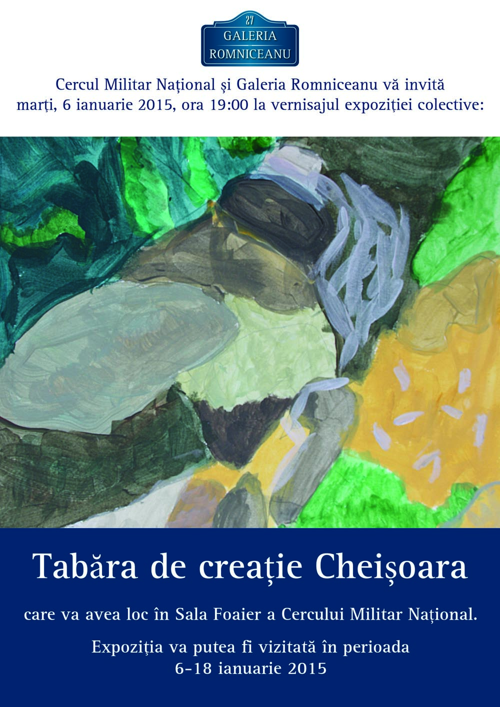 Expoziţie colectivă de pictură, organizată de Galeria Romniceanu, cu lucrări ale copiilor realizate în Tabăra de creație Cheișoara – august 2014, profesor Ana – Maria STANCIU. Expoziția este deschisă în perioada 5 – 18 ianuarie 2015.