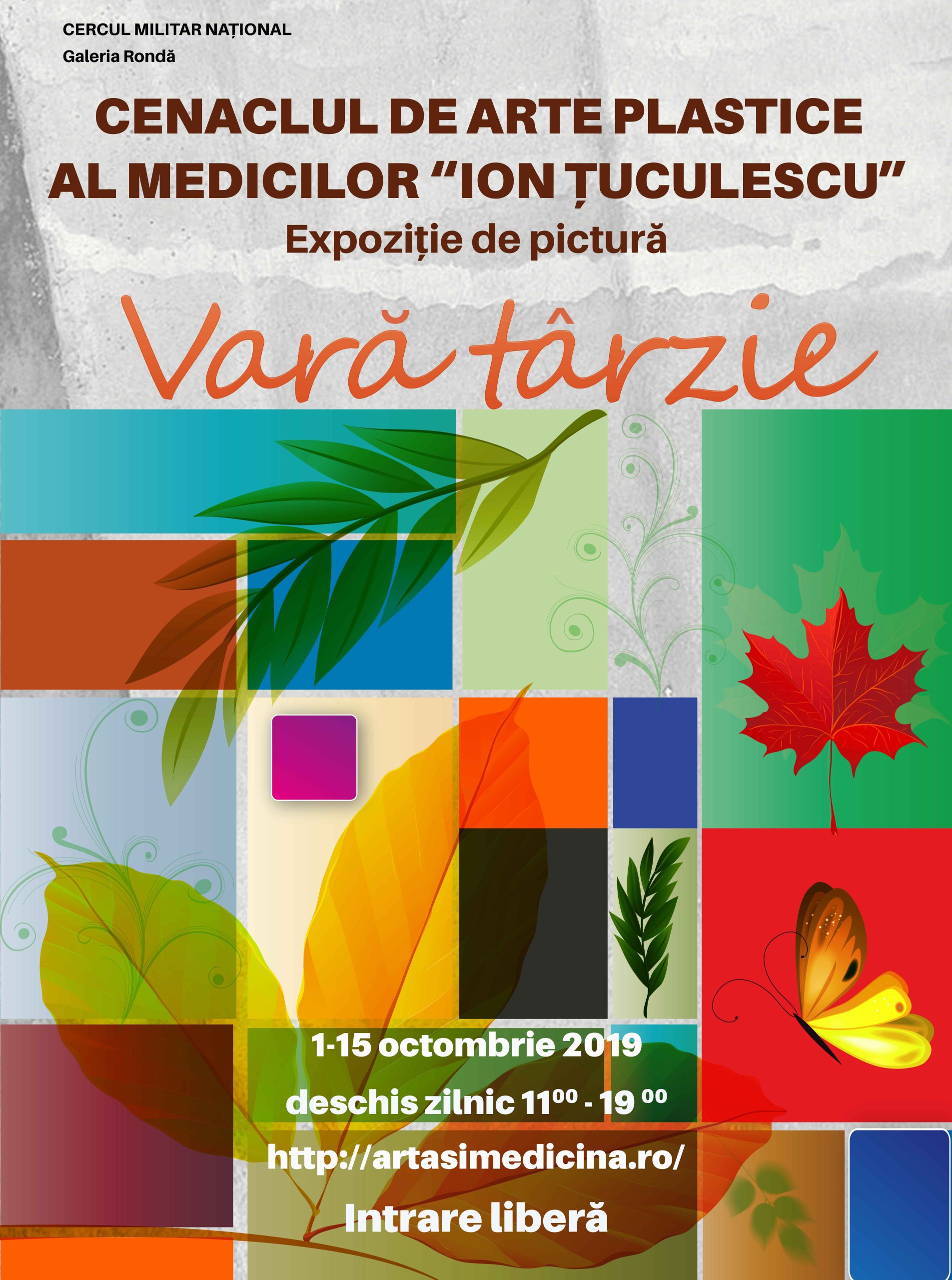 Expoziția de pictură ″Vară târzie″ organizată de Cenaclul de Arte Plastice al Medicilor ″Ion Țuculescu″ deschisă în perioada 1-14 octombrie 2019.