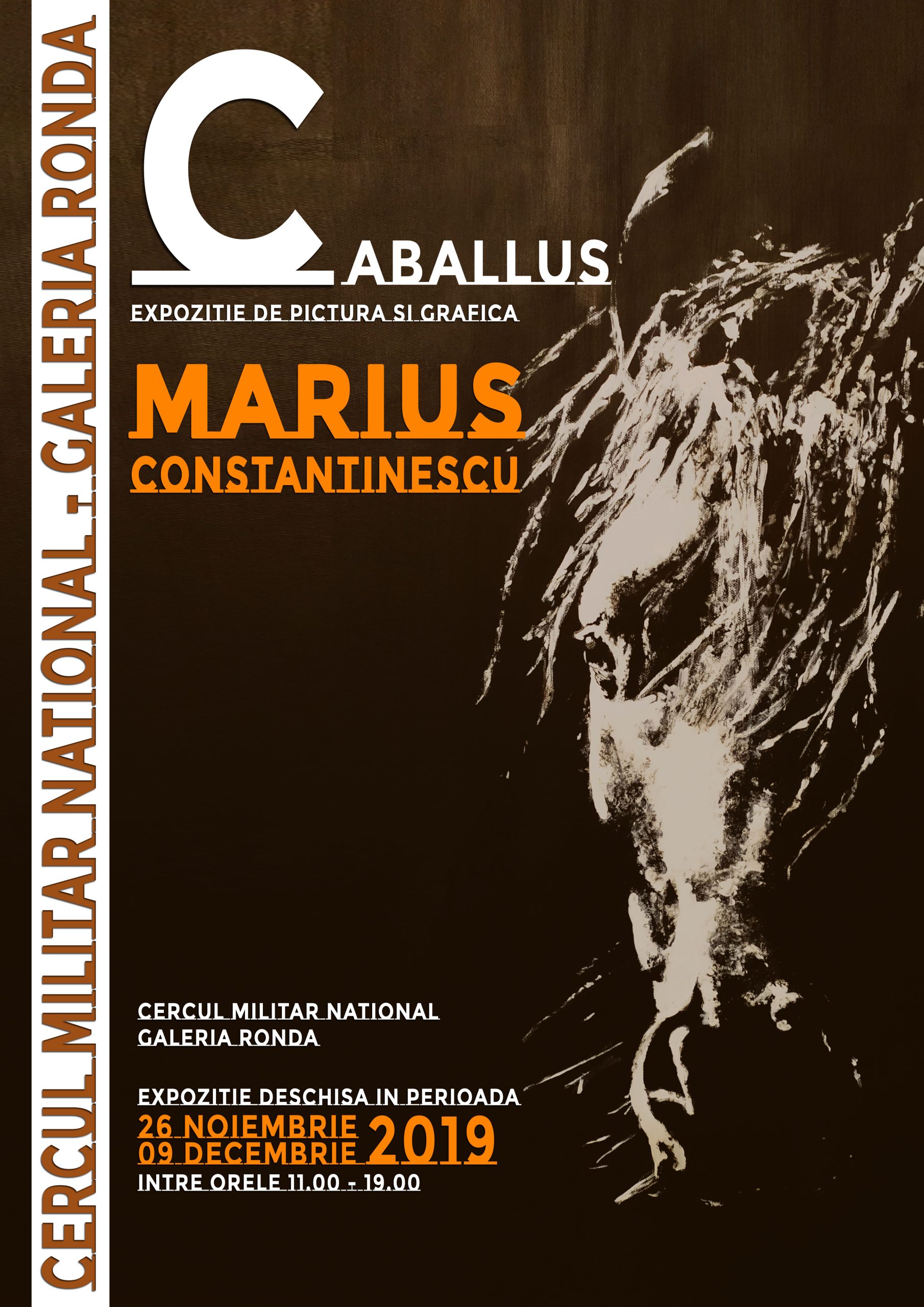 Expoziția de pictură și grafică ″Caballus″ a artistului plastic Marius Constantinescu, ofițer inginer în cadrul Departamentului pentru Armamente, deschisă în perioada 26 noiembrie – 9 decembrie 2019.