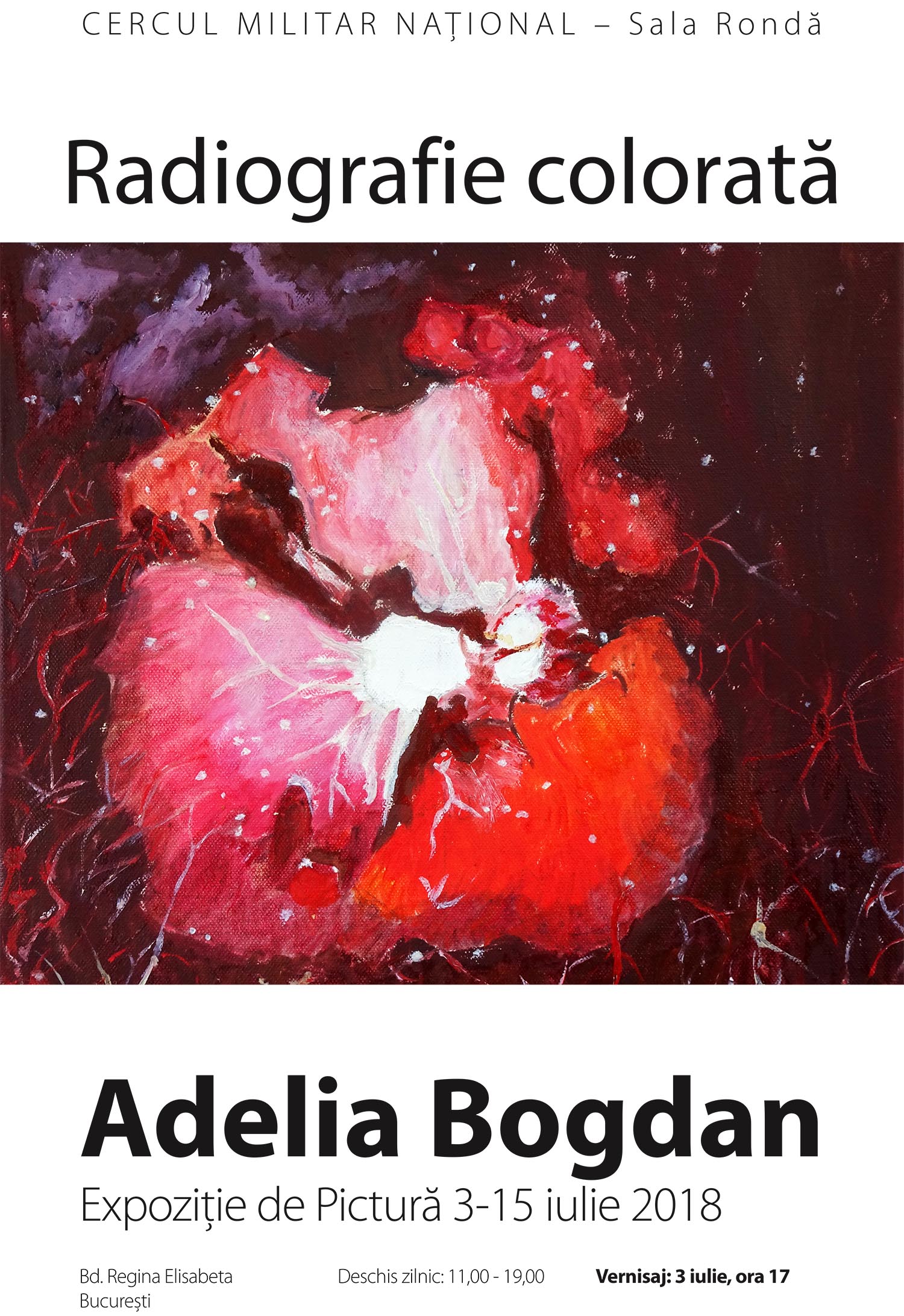 Expoziția de pictură „Radiografie colorată” a artistei plastice Adelia Bogdan, deschisă în perioada 3 – 16 iulie 2018.