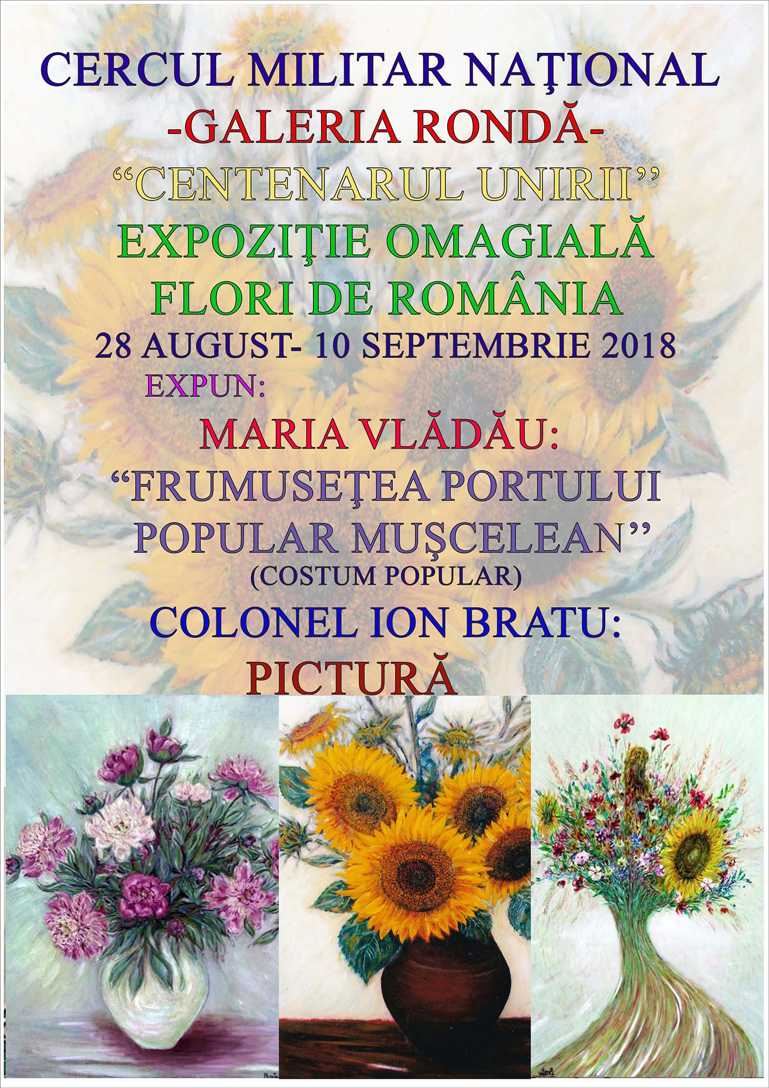 Expoziția de pictură ″Flori de România″ a artistului plastic Ion Bratu. Expoziția cuprinde și costume populare din zona Muscelului, care fac parte din colecția doamnei Maria Vlădău. Expoziția este deschisă în perioada 28 august – 10 septembrie 2018.
