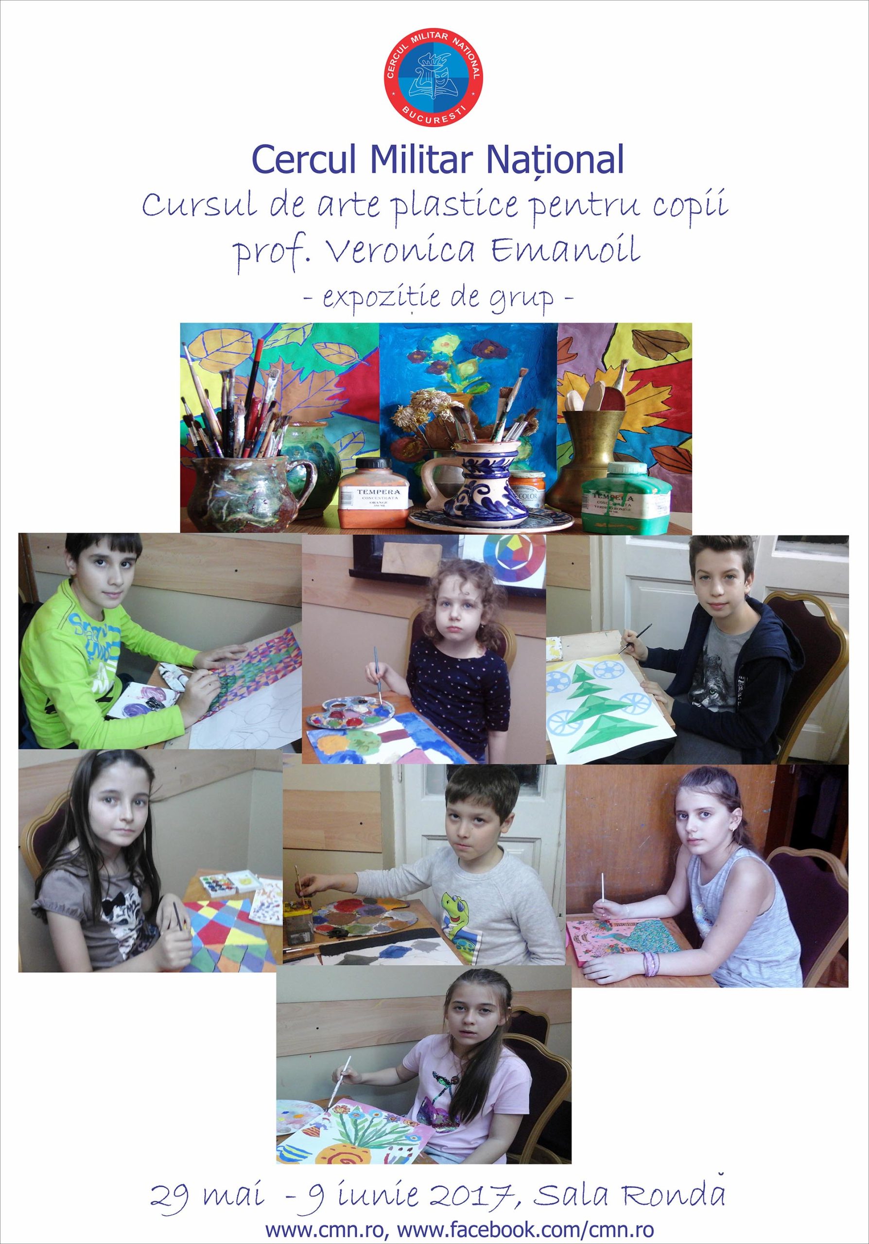 Expoziția Cursului de arte plastice pentru copii, organizat de Cercul Militar Național, profesor Veronica Emanoil, deschisă în perioada 29 mai – 9 iunie 2017.
