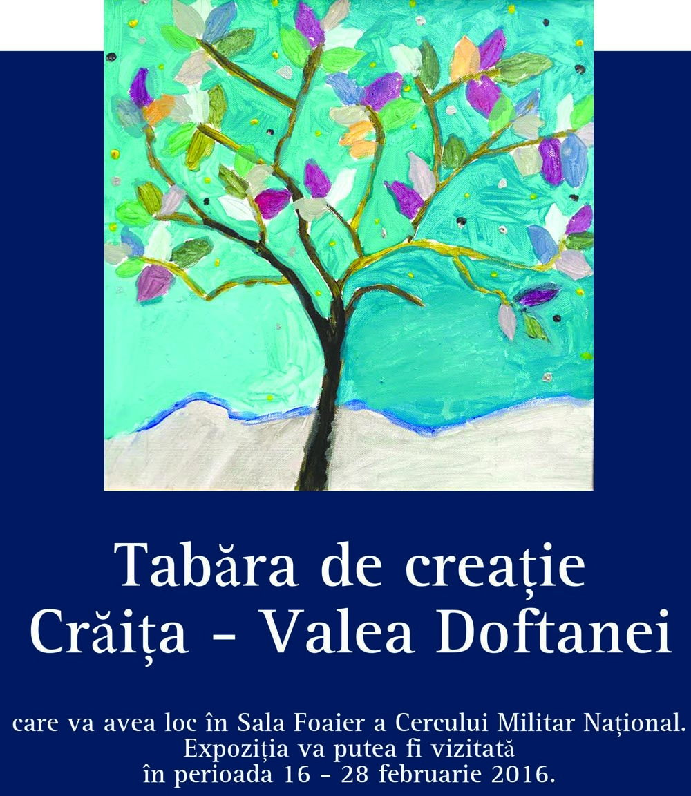 Expoziţia de pictură „Tabăra de creație: Crăița – Valea Doftanei” a unui grup de copii ce studiază arta plastică la Galeria Romniceanu, deschisă în perioada 15 – 28 februarie 2016.