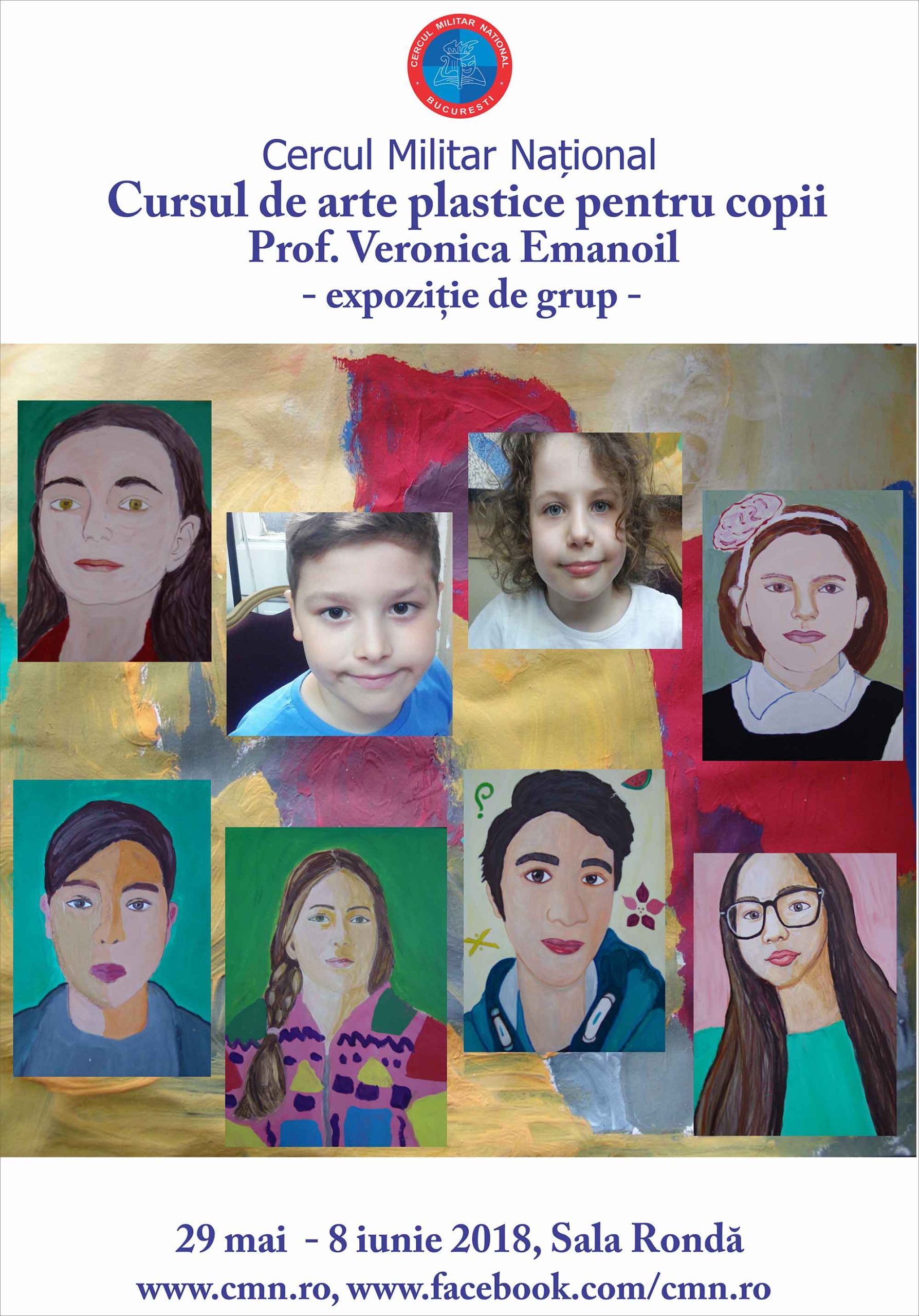 Expoziția Cursului de arte plastice pentru copii 2017-2018, prof. Veronica Emanoil, organizat de Cercul Militar Național. Expoziția este deschisă în perioada 29 mai – 8 iunie 2018.