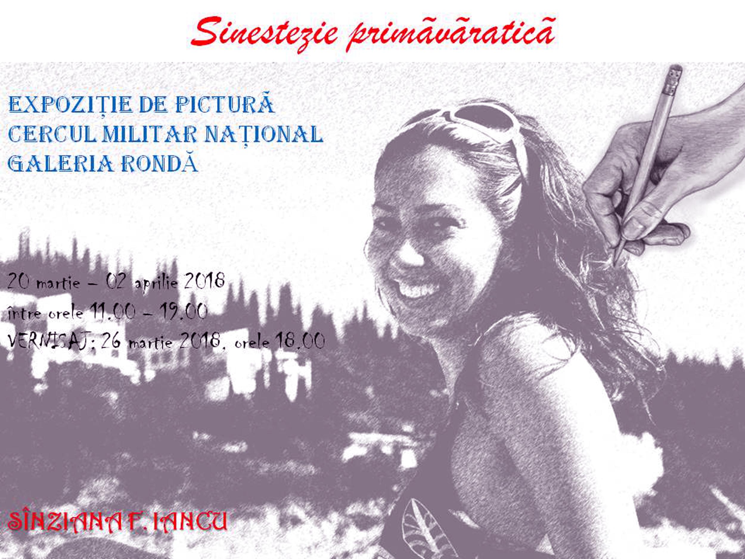 Expoziția de pictură ”Sinestezie primăvăratică” a artistei plastice Sânziana Iancu, deschisă în perioada 20 martie – 2 aprilie 2018. Artista este căpitan în armata română, absolventă a Academiei Forțelor Terestre ”Nicolae Bălcescu” din Sibiu, a Școlii Populare de Arte ”Ion Andreescu” din Buzău și a Școlii de Arte din Sibiu ”Ilie Micu”.