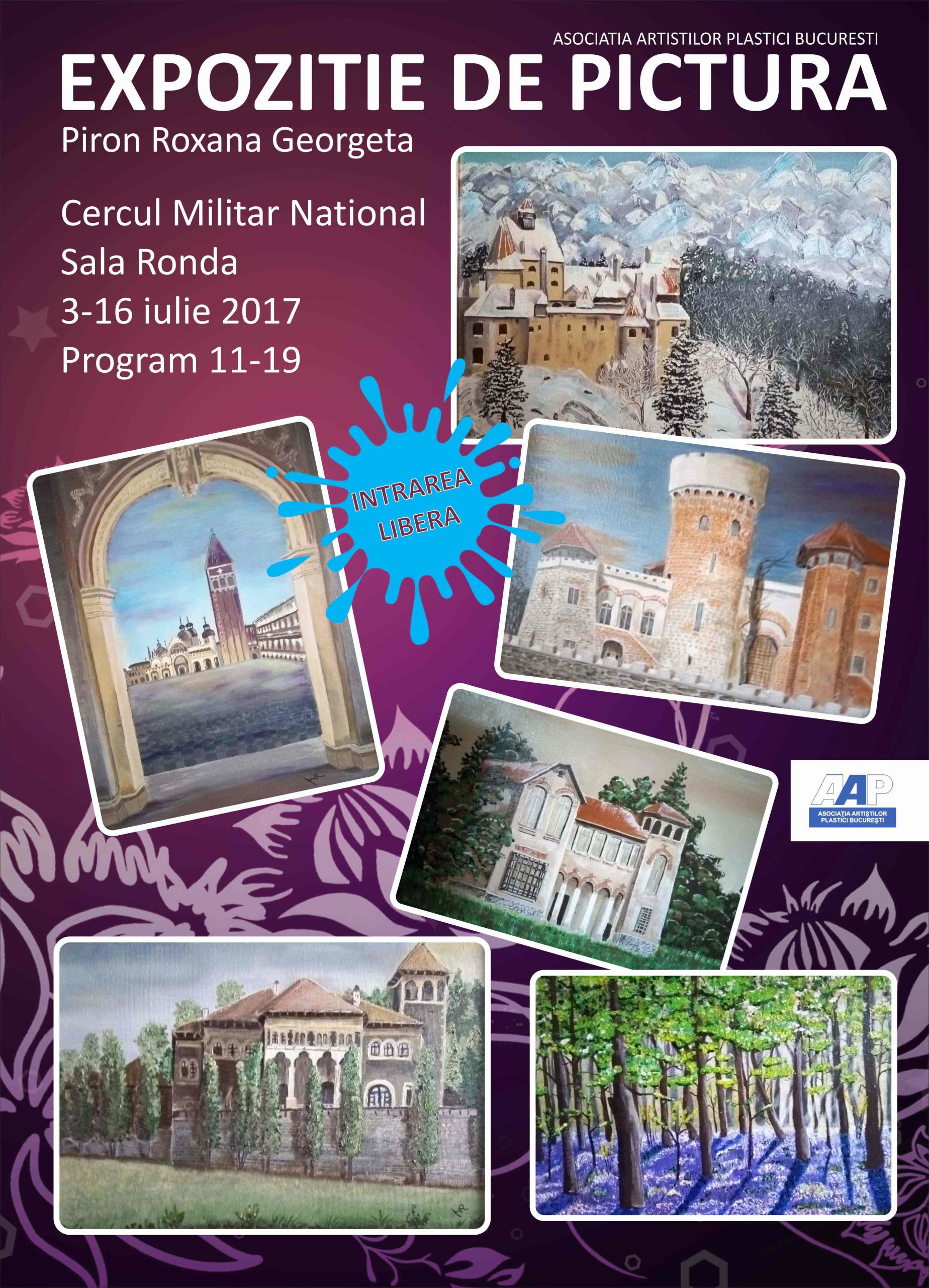 Expoziția de pictură a artistei plastice Roxana Piron, deschisă în perioada 3 – 16 iulie 2017.