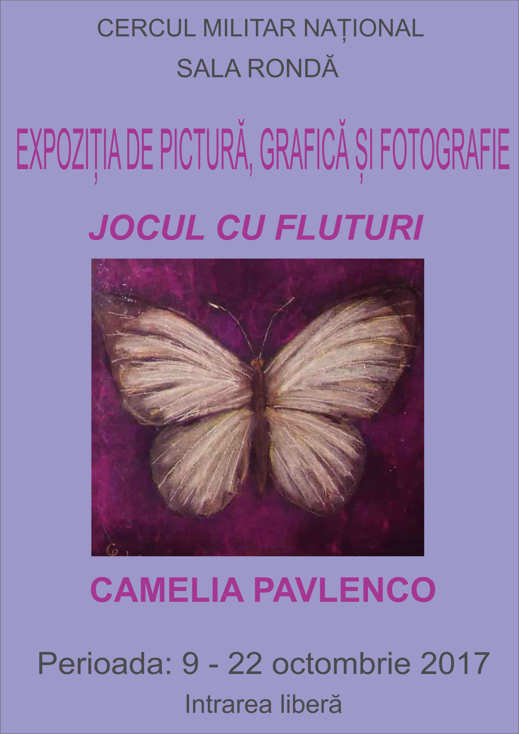 Expoziția de pictură, fotografie și grafică ”Jocul cu fluturi” a artistei plastice Camelia Pavlenco, deschisă în perioada 9 – 22 octombrie 2017.