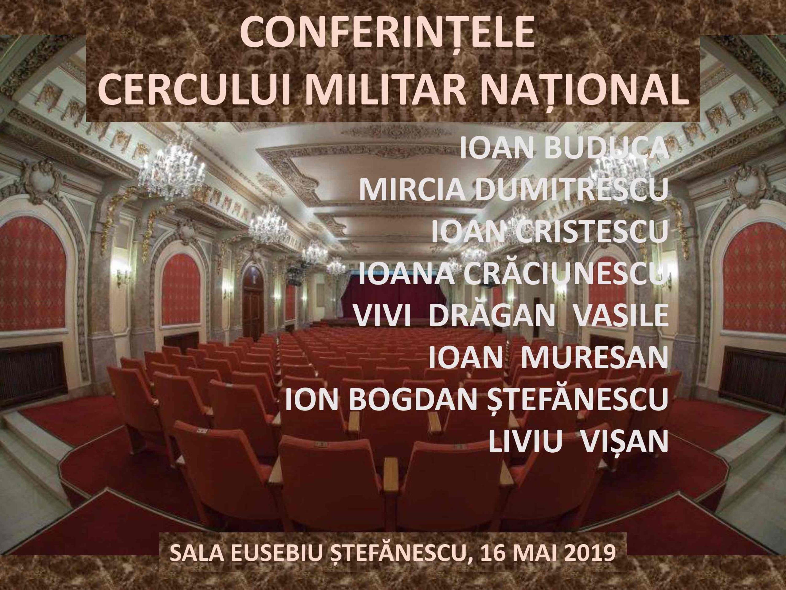 Joi, 16 mai 2019, ora 15.00, la Sala „Eusebiu Ștefănescu”, a avut loc Conferința „Transparentele aripi. Mihai Eminescu-Nichita Stănescu-Eusebiu Ștefănescu”. Invitați: Ioan Buduca, filozof, critic literar, eseist, publicist, Mircia Dumitrescu, artist plastic, Ioan Cristescu, directorul Muzeului Național al Literaturii Române, Ioana Crăciunescu, poetă și actriță, Vivi Drăgan Vasile, director de imagine, Ioan Mureșan, poet, și Ion Bogdan Ștefănescu, muzician și poet. Moderator: col.(r) Liviu Vișan, poet, Biblioteca Militară Națională.