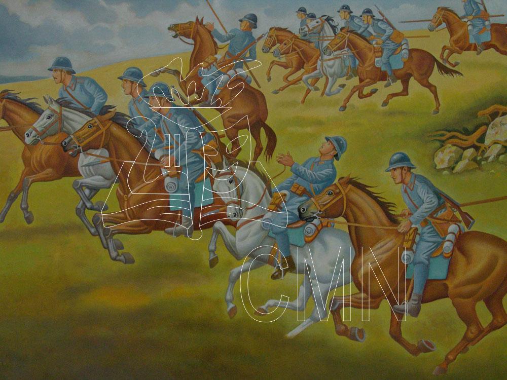 În partea română expun artiştii plastici ai studioului Marcel Chiţac, Cătălin Gadei, George Grigorescu, Bela Kromer, Valentin Macarie, Albin Stănescu, Valentin Tănase, directorul Studioului de Arte Plastice al Armatei, alături de invitaţii lor, pictorii Andrei Damo şi Ion Drăghici. Peste treizeci de lucrări realizate si prezentate sunt inspirate atât din momentele de glorie ale ostaşilor români din timpul ducerii bătăliilor, cât şi din viaţa de zi cu zi a celor aflaţi sub arme, în transee, în repaus, sau în pregatirea pentru actiunea de lupta. Sunt prezentate în portrete sugestive figuri şi personalităţi emblematice ale epocii: regele Ferdinand I şi regina Maria, generali, ofiţeri şi simpli militari, fie deveniţi eroi, fie rămaşi anonimi, a căror jertfă a stat la temelia victoriei finale. Din colecţia Muzeului Militar Naţional sunt prezentate două lucrări realizate de doi clasici ai picturii româneşti interbelice, Camil Ressu şi Costin Petrescu, participanţi direcţi la campaniile din timpul Marelui Război, ca şi o colecţie de arme şi uniforme din perioada 1914-1918.