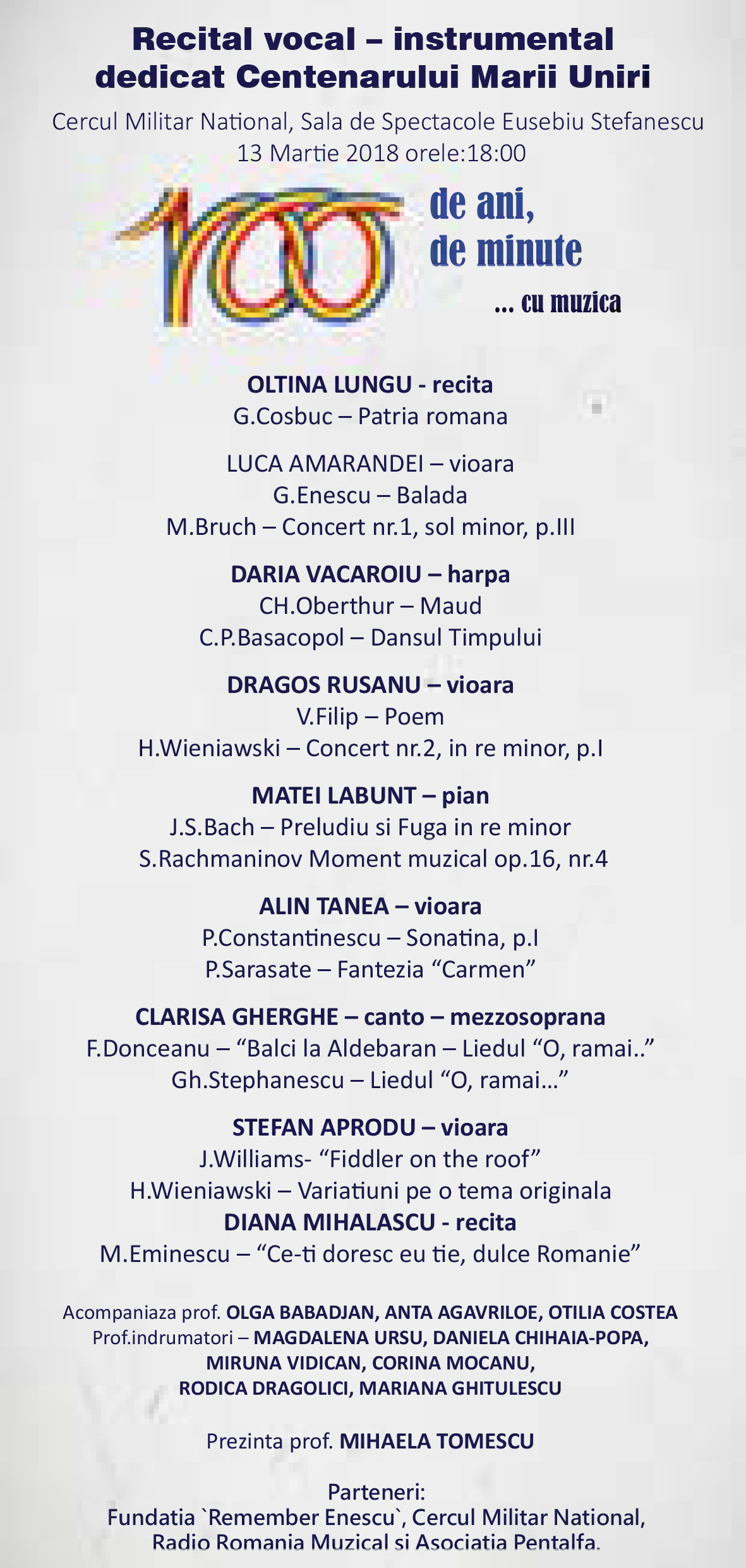 Recital ”100 de ani, de minute… cu muzica”