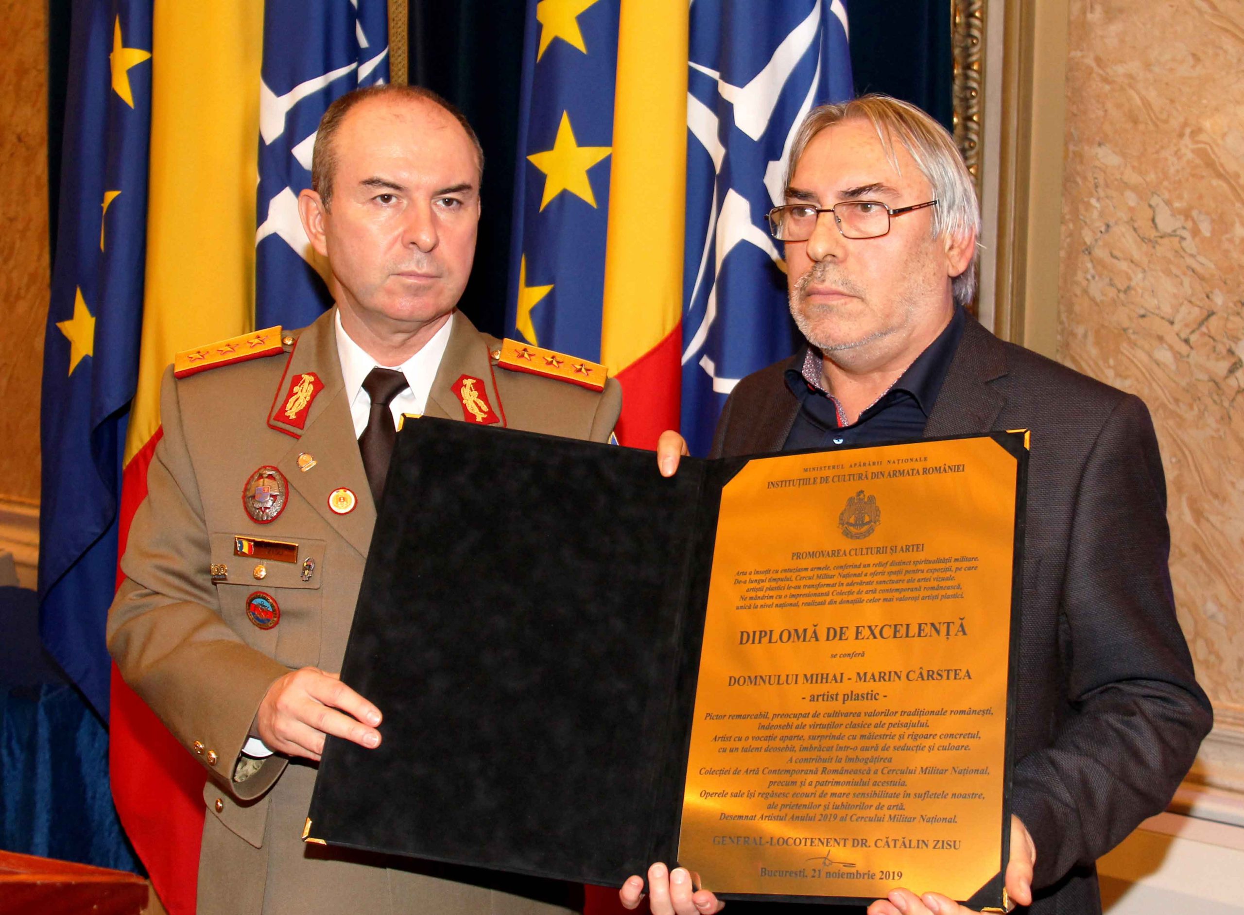 Joi, 21 noiembrie 2019, la Sala de Marmură, a avut loc ceremonia de decernare a Trofeului ″Artistul Anului 2019 al Cercului Militar Național″ oferit pictorului MIHAI – MARIN CÂRSTEA de către domnul general-locotenent dr. Cătălin Zisu, comandantul Comandamentului Logistic Întrunit.