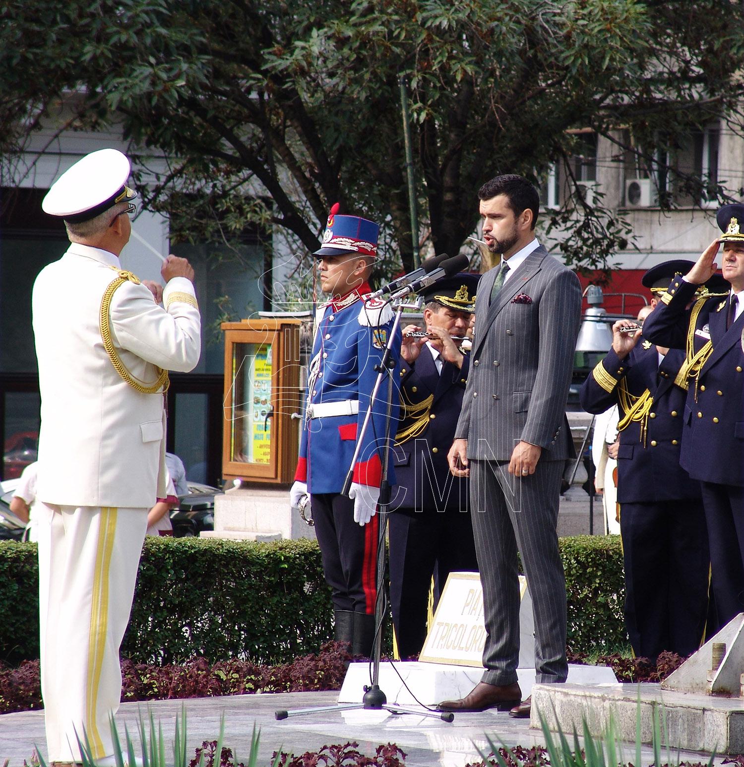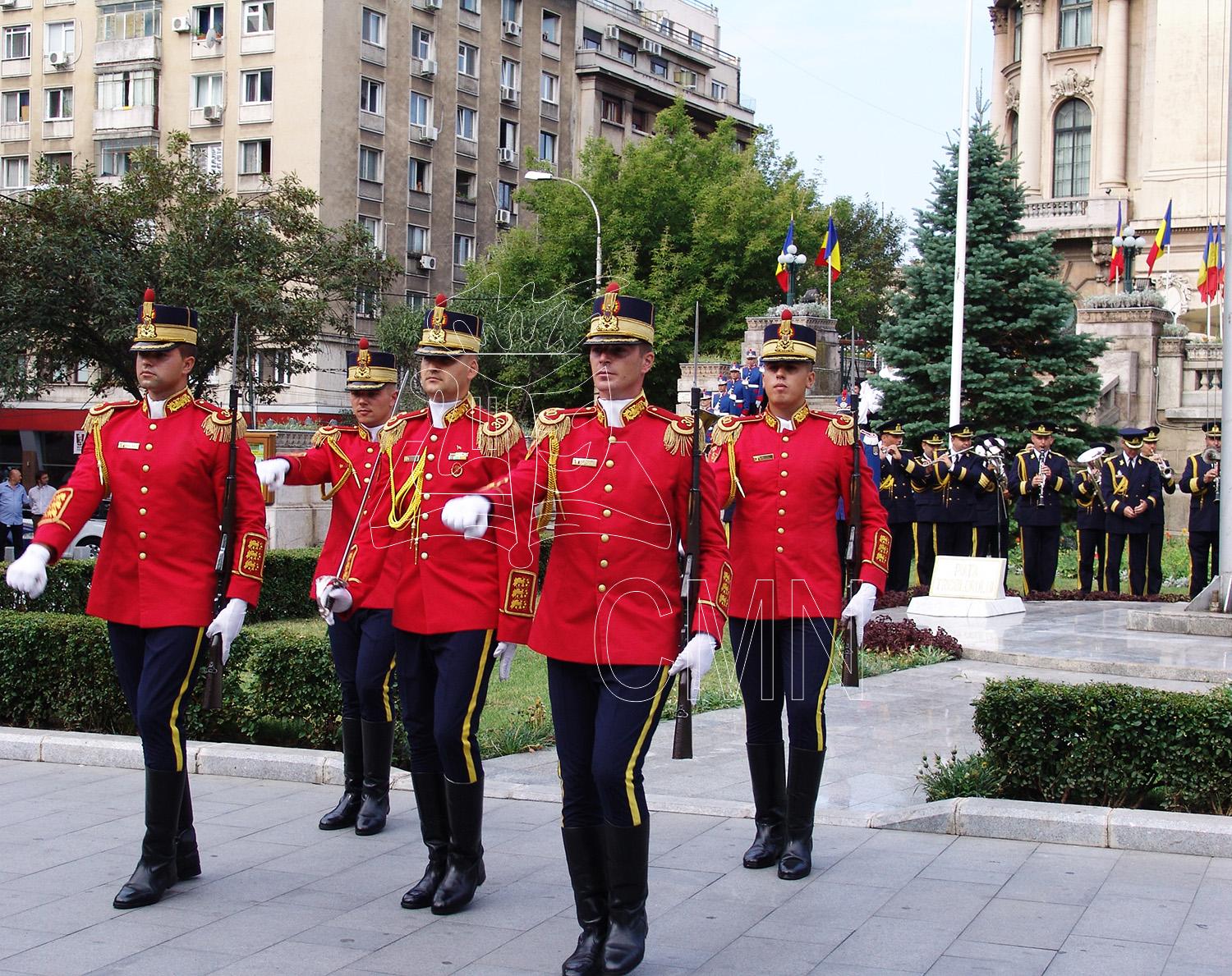 Tenorul Vlad Miriță a intonat imnul național al României, „Deșteaptă-te române!”, acompaniat de orchestrele amintite. Militarii Regimentului 30 Gardă „Mihai Viteazul” au defilat, și au prezentat onorul, iar în final au realizat un exercițiu demonstrativ de mânuire a armelor, tip drill-team.
